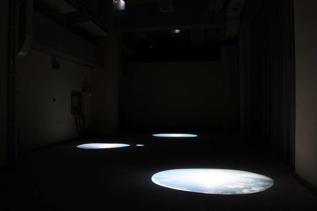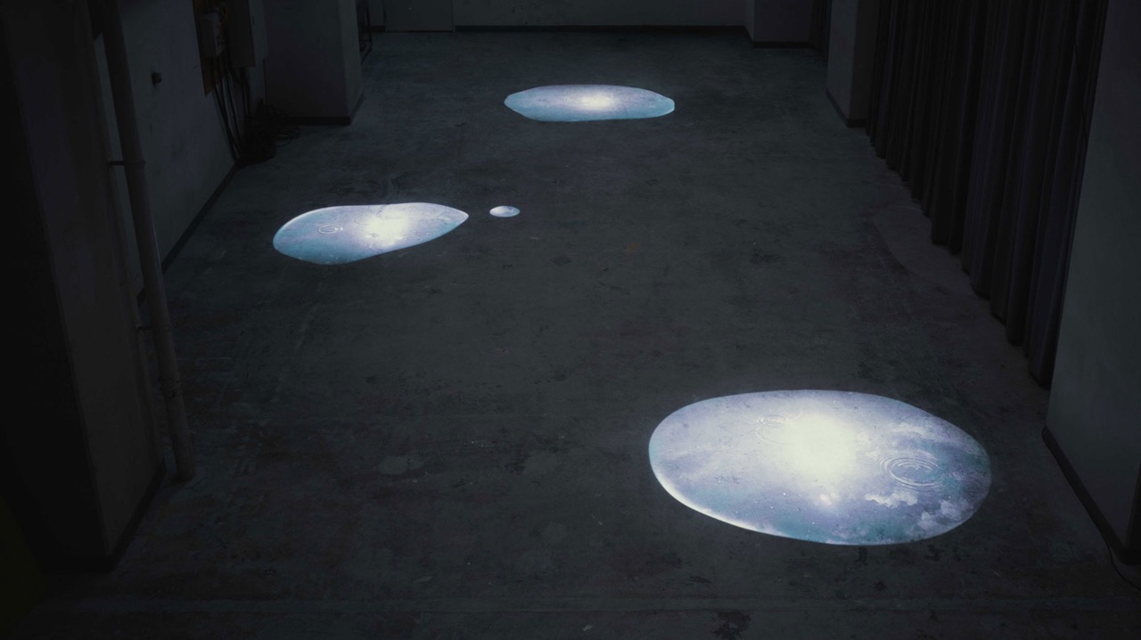 Site-specific video installation of water reflections of the puddle image.